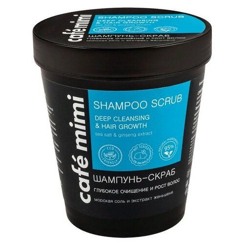 НАЙТИ ВЫГОДНЕЕ - Cafe mimi шампунь-скраб Глубокое очищение и рост волос с морской солью и экстрактом женьшеня, 330 мл