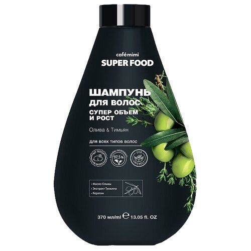 НАЙТИ ВЫГОДНЕЕ - Cafe mimi Super food шампунь Супер объем и рост c экстрактами оливы и тимьяна, 370 мл