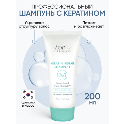 НАЙТИ ВЫГОДНЕЕ - Шампунь для волос Von-U для окрашенных и поврежденных волос Keratin Rehab, 200 мл
