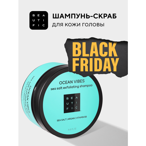 НАЙТИ ВЫГОДНЕЕ - BEAUTIFIC шампунь-скраб для кожи головы, пилинг для головы, глубокое очищение и прикорневой объем, для роста волос Ocean Vibes, 250 мл 250 мл 250 г