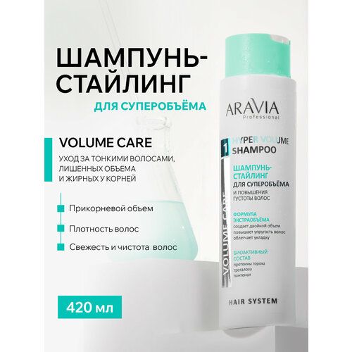 НАЙТИ ВЫГОДНЕЕ - ARAVIA Шампунь-стайлинг для придания суперобъема и повышения густоты волос Hyper Volume Shampoo, 420 мл