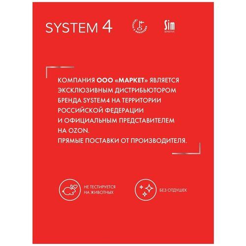 Шампунь подходит для жирной и чувствительной кожи головы. Продукт стабилизирует работу сальных желез, оказывает выраженное противовоспалительное действие. Шампунь №4 не рекомендуется использовать шампунь чаще, чем 3-4 раза в неделю. Комбинируйте использование с шампунем №1. “Этот шампунь может прекрасно подойти подросткам в период активности работы сальных желез” В. Ехвая, тренер System 4.
