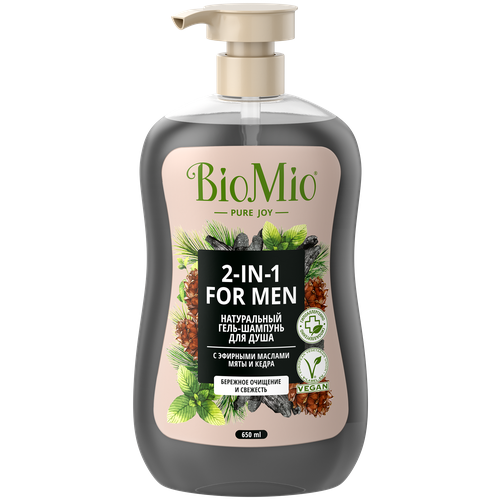 НАЙТИ ВЫГОДНЕЕ - BioMio Натуральный гель-шампунь для душа BioMio 2-IN-1 For Men с эфирными маслами мяты и кедра, 650 мл 650 мл 1 шт. 735 г