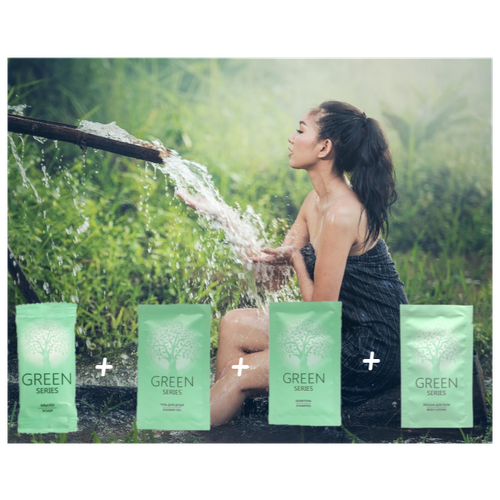 В набор коллекции серии Green Line входит одноразовый шампунь, одноразовый гель, лосьон для тела одноразовый, одноразовое мини мыло. Универсальное мини мыло косметико-гигиенической серии Green Line производства России предназначен для использования в номерах гостиниц класса люкс. Комплектование номеров гостиниц одноразовыми гигиеническими и косметическими аксессуарами является обязательной опцией в сервисе хорошего отеля. Мыло находится в пакетике саше 13г. Этого количества средства достаточно для однократного применения. Пакет саше выполнен из синтетического материала и имеет стильный дизайн. Шампунь, гель для душа и лосьон для тела, серии "Green Line" 10мл. обладает элегантной и сбалансированной парфюмерной композицией.