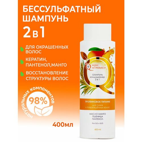 Шампунь кондиционер, Индекс Натуральности, для сухих и повреждённых волос с Манго, 400 мл