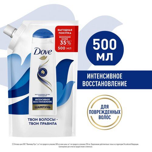 НАЙТИ ВЫГОДНЕЕ - Шампунь для волос женский Dove Hair Therapy Интенсивное восстановление для поврежденных волос 500 мл,