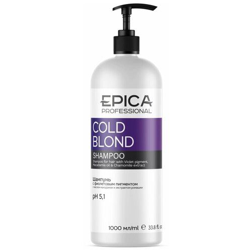 EPICA PROFESSIONAL Cold Blond Шампунь с фиолетовым пигментом, с маслом макадамии и экстрактом ромашки, 1000 мл