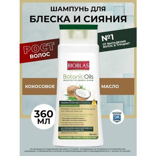 НАЙТИ ВЫГОДНЕЕ - Шампунь против выпадения волос BIOBLAS с кокосовым маслом, для блеска волос, 360 мл