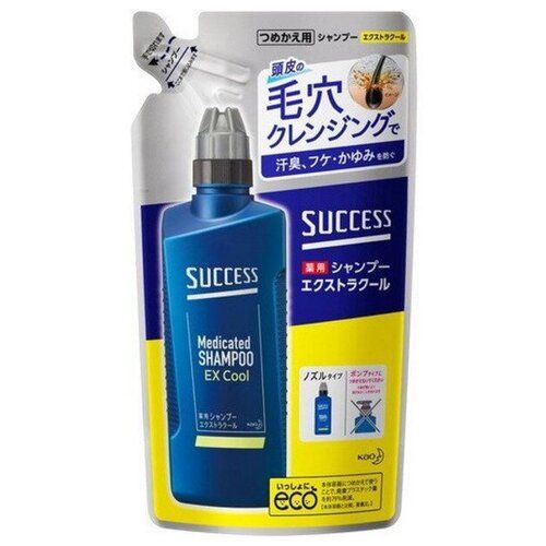 НАЙТИ ВЫГОДНЕЕ - Kao Лечебный шампунь для мужчин с охлаждающим эффектом, с ментолом и эвкалиптом Success Extra Cool 320 мл (запасной блок)