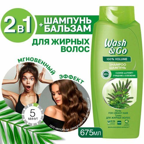 НАЙТИ ВЫГОДНЕЕ - Шампунь для жирных волос Wash&Go с экстрактами трав 675 мл