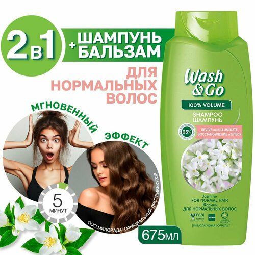 Шампунь для нормальных волос Wash&Go с экстрактом жасмина 675 мл бережно ухаживает за вашими волосами, придавая им жизненный блеск и яркость