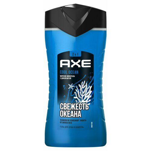 Гель для душа и шампунь 2 в 1 Cool Ocean – новый 100% топовый аромат от AXE*. Сочетание морских минералов с аккордами дикой мяты – то, что нужно, чтобы быстро проснуться и получить заряд чистоты на весь день. Продукт бескомпромиссно хорош как шампунь и гель для душа. Гель для душа и шампунь 2 в 1 Axe эффективно смывает бактерии, очищает и ухаживает за кожей и волосами пока ты в душе. В формуле продукта использована технология усиленной защиты от запаха пота, которая обеспечит свежесть до 12 часов. Гель для душа АХЕ Cool Ocean – это бережное очищение и качественный уход за кожей, который поддерживает баланс pH. В состав геля входят пребиотики растительного происхождения, а также увлажняющие ингредиенты. Не содержит парабены. Все, что нужно для чистой, увлажненной, ухоженной кожи и волос, к которым хочется прикоснуться.
