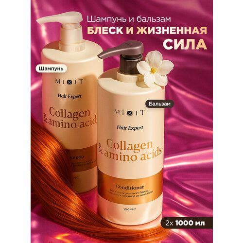НАЙТИ ВЫГОДНЕЕ - MIXIT Набор шампунь и бальзам для восстановления блеска волос против ломкости Hair Expert, 2000 мл