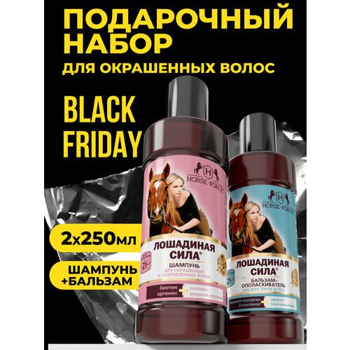 Подарочный набор для женщин Лошадиная Сила профессиональный шампунь для окрашенных волос, от выпадения длина и густота и бальзам «Защита Цвета» 2х250мл 102506992895