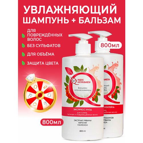 Представляем набор натуральной косметики - женский шампунь и бальзам кондиционер. Увлажняющий шампунь создает объем и бережно очищает локоны и кожу головы. Экстракт рябины и комплекс витаминов питает и укрепляет поврежденные волосы. Пантенол увеличивает густоту и блеск. Ниацинамид стимулирует рост, уменьшает ломкость. Шампунь сохраняет яркость цвета окрашенных прядей. Бальзам-ополаскиватель облегчает расчесывание и отличный выбор после кератинового выпрямления или ботокса. Бессульфатный шампунь имеет антистатик эффект и снижает сальность жирных волос. Кератин выступает как восстанавливающий агент, избавляет от секущихся кончиков. Подарочный сет подходит для всех типов, как для нормальных, так и сухих и вьющихся, и станет идеальным подарком маме или подруге на любой праздник. Продукция Лаборатории Ихтионелла - профессиональный уход от бренда салонного уровня. Без сульфатов, силиконов и парабенов.