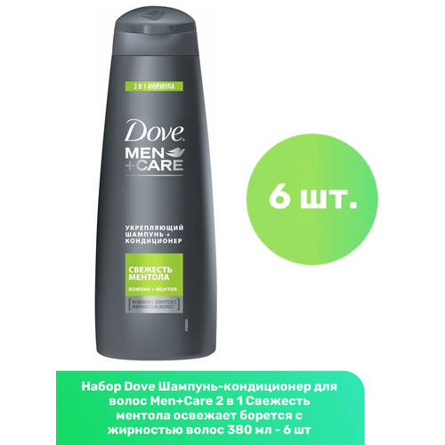 НАЙТИ ВЫГОДНЕЕ - Dove Шампунь-кондиционер для волос Men+Care 2 в 1 Свежесть ментола освежает борется с жирностью волос 380 мл - 6 шт
