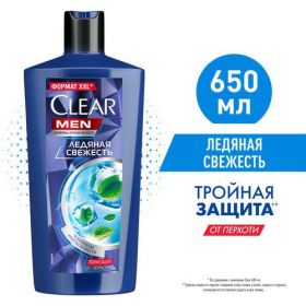 Перхоть и склонность волос к жирности доставляют неудобства? Попробуйте поменять шампунь, ведь мужские волосы нуждаются в особом уходе. Шампунь Clear против перхоти Ледяная свежесть с ментолом разработан специально для мужской кожи головы''.