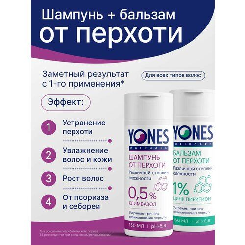 НАЙТИ ВЫГОДНЕЕ - Шампунь и бальзам для волос Yones против перхоти с дозатором, 300 мл, Набор