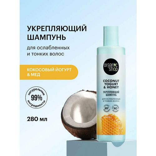 НАЙТИ ВЫГОДНЕЕ - Шампунь для тонких волос Organic Shop Coconut yougurt Укрепляющий питательный и восстанавливающий, увлажняющий 280 мл