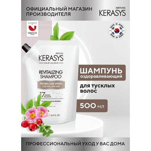 Профессиональный протеиновый шампунь для волос женский мужской Kerasys HAIR CLINIC Revitalizing Shampoo ОЗДОРАВЛИВАЮЩИЙ С АМИНОКИСЛОТАМИ И ЭКСТРАКТОМ ШИПОВНИКА.