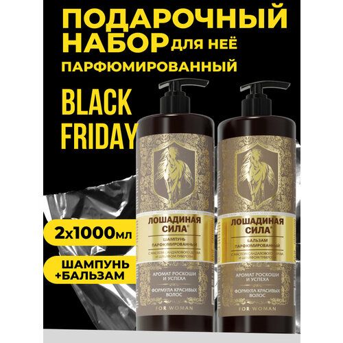 НАЙТИ ВЫГОДНЕЕ - Шампунь для волос женский и бальзам Лошадиная сила набор Аромат роскоши и успеха с маслом сандалового дерева 1000+1000мл
