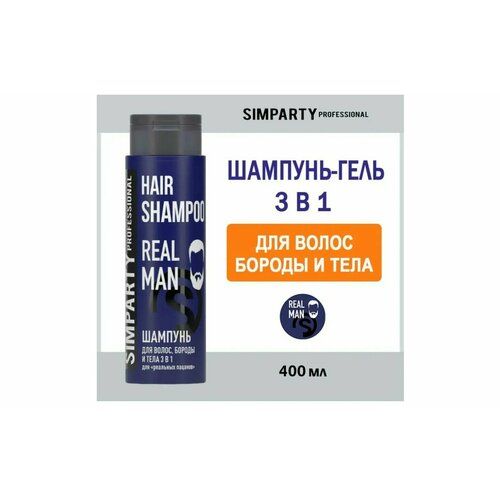 Шампунь-гель для волос, бороды и тела 3 в 1 от Simparty Professional – это профессиональное средство для мужчин, которое сочетает в себе функции шампуня, геля для тела и бороды. Объем составляет 400 мл, что делает его экономичным и удобным в использовании.