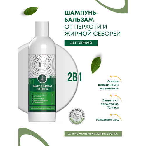 Концентрированный шампунь-бальзам 2 в 1 для нормальных и жирных волос с дегтем, кератином, коллагеном и прополисом эффективно очищает кожу головы, не сушит и не стягивает кожу, борется с перхотью, снижает выработку кожного сала, снимает раздражение и зуд кожи головы, великолепно укрепляет, восстанавливает и питает поврежденные волосы, защищает от появления перхоти до 72 часов.