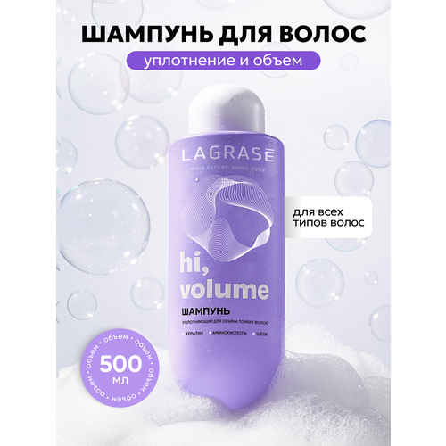 НАЙТИ ВЫГОДНЕЕ - Шампунь для волос женский LAGRASE Hi, volume уплотняющее средство для объема тонких волос, 500 мл