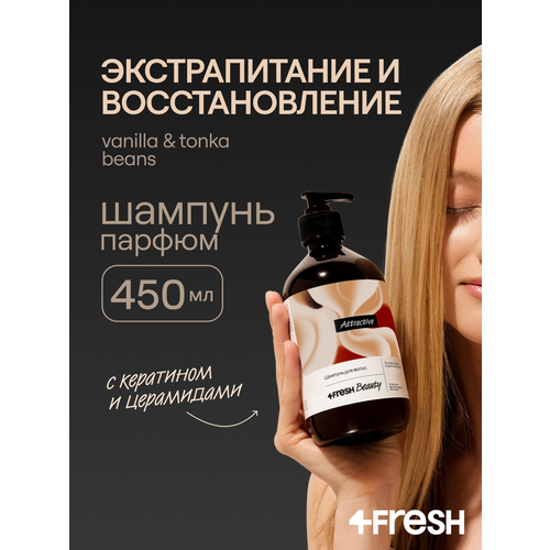 НАЙТИ ВЫГОДНЕЕ - Шампунь 4FRESH beauty Attractive Экстрапитание и восстановление, сливочная ваниль и бобы тонка, бессульфатный, 450 мл