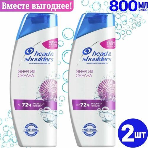 Артикул: 0689-310. Объем: 400 мл, Вес: 463 гр, Размер упаковки: 7 x 21 x 4 см, Вид: Шампунь, Вид шампуня: Жидкий, Для кого: Унисекс, Тип волос: Для всех типов, Эффект: От перхоти. Head & Shoulders против перхоти 2 в 1 Шампунь и Бальзам-ополаскиватель обеспечивает защиту от перхоти до 72 часов. Его усовершенствованная формула протестирована дерматологами, pH сбалансирована и усилена антиоксидантами для бережного ухода за волосами и кожей головы. Шампунь "Энергия океана" очищает, придавая коже головы ощущение свежести. Head & Shoulders бренд шампуней № 1 в России, который также заботится о планете: флакон пригоден для переработки (за исключением колпачка и этикетки). До 72 часов защиты от перхоти (видимой перхоти при регулярном применении); Обеспечивает до 100% свободы от перхоти (при регулярном применении); Дерматологически протестированная, pH-сбалансированная формула с антиоксидантами для мягкого ухода за кожей головы и волосами; Очищает, придавая коже головы ощущение свежести; Для наилучшего результата используйте в сочетании с бальзамом-ополаскивателем Head & Shoulders, который глубоко увлажняет волосы и кожу головы; Бренд шампуней № 1 в России (расчет P&G на основании годовых внешних продаж в категории "шампуни")С заботой о планете: Флакон пригоден для переработки (за исключением колпачка и этикетки)Предосторожности: Избегайте контакта с глазами. При попадании в глаза тщательно промойте их водой. Состав: Aqua, Sodium Lauryl Sulfate, Sodium Laureth Sulfate, Glycol Distearate, Zinc Carbonate, Sodium Chloride, Sodium Xylenesulfonate, Zinc Pyrithione, Cocamidopropyl Betaine, Dimethicone, Parfum, Menthol, Sodium Benzoate, Guar Hydroxypropyltrimonium Chloride, Hydrochloric Acid, Sodium Hydroxide, Magnesium Carbonate Hydroxide, Hexyl Cinnamal, Linalool, Magnesium Nitrate, Sodium Polynaphthalenesulfonate, Methylchloroisothiazolinone, Magnesium Chloride, CI 42090, Methylisothiazolinone, CI 17200.