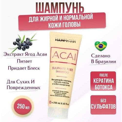 Сбалансированный домашний комплекс Happy Hair Acai оказывает бережное очищение нормальной и жирной кожи головы.
