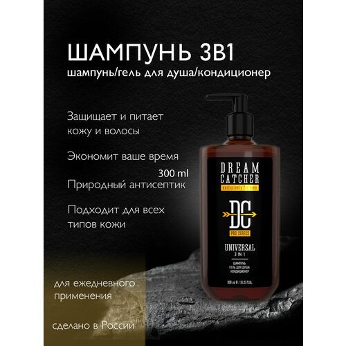 Dream Catcher 3 в 1 шампунь, гель, кондиционер для мужчин 300 мл - это многофункциональное средство для ухода за волосами и телом, разработанное специально для мужчин.