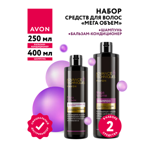 НАЙТИ ВЫГОДНЕЕ - Набор для волос Avon Advance Techniques Мега объем бальзам-кондиционер 250 мл. + шампунь 400 мл.