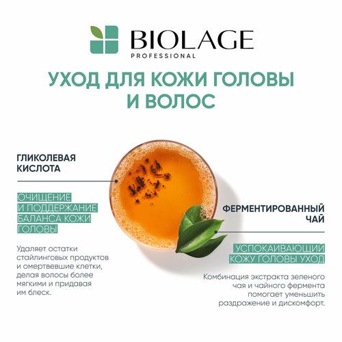 Шампунь устраняет перхоть, предотвращает появление шелушения и успокаивает раздраженную кожу головы. Содержит пиритион цинка, экстракт перечной мяты и ментол. Применение: нанести на влажные волосы, вспенить массирующими движениями. После рекомендуется использовать любой кондиционер BIOLAGE™ по типу волос.