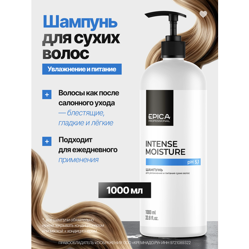 НАЙТИ ВЫГОДНЕЕ - EPICA Professional Intense Moisture Шампунь для увлажнения и питания сухих волос, 1000 мл.