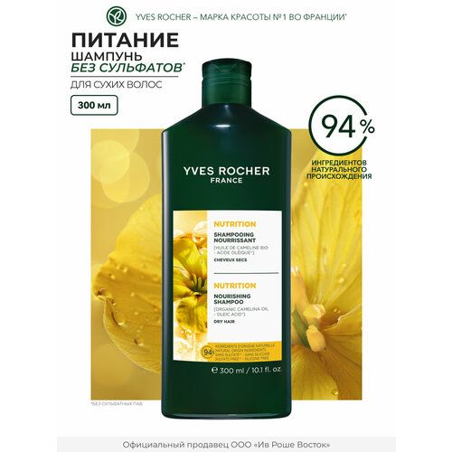НАЙТИ ВЫГОДНЕЕ - Шампунь Yves Rocher Питание, для сухих волос, без сульфатов, с маслом рыжика, 300мл