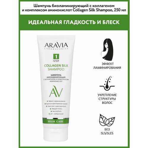НАЙТИ ВЫГОДНЕЕ - ARAVIA Шампунь биоламинирующий с коллагеном и комплексом аминокислот Collagen Silk Shampoo, 250 мл