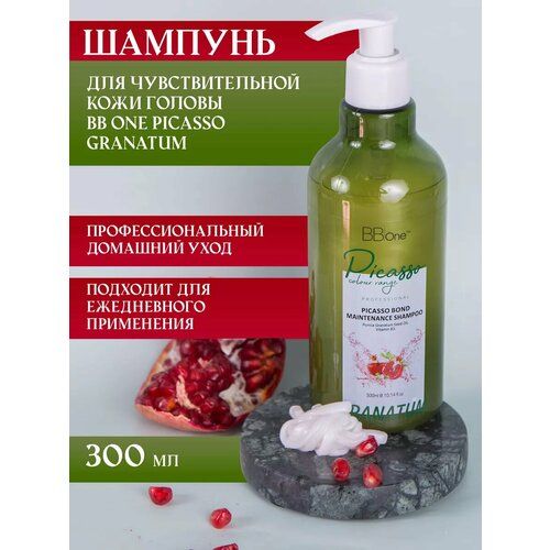 Шампунь BB One Picasso Гранатум для чувствительной кожи головы и ослабленных волос, потерявших эластичность. Безопасная ультрамягкая формула на основе натуральных компонентов бережно очищает кожу головы, восстанавливает pH баланс, предотвращая раздражение и зуд. Комплекс из масел семян граната, зародышей пшеницы и витамин В3 питает сухие волосы предавая им эластичность, мягкость и блеск. Бессульфатный шампунь сохраняет цвет окрашенных волос, укрепляет структуру. Профессиональные средства для волос Maintenance подходят для ухода за волосами после процедур восстановления: ботокс, ламинирование, после кератин и т. д.
