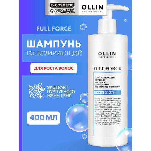 НАЙТИ ВЫГОДНЕЕ - Шампунь FULL FORCE для очищения волос OLLIN PROFESSIONAL тонизирующий с экстрактом пурпурного женьшеня 400 мл