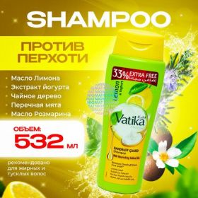 НАЙТИ ВЫГОДНЕЕ - Dabur Vatika Шампунь для волос от перхоти с лимоном и йогуртом Дабур Ватика, 400мл+132мл