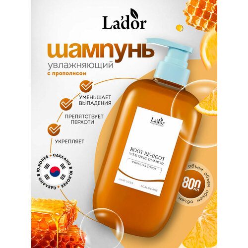 НАЙТИ ВЫГОДНЕЕ - Шампунь для волос La'dor для сухой кожи головы с прополисом Root Re-Boot Vitalizing Shampoo 800мл