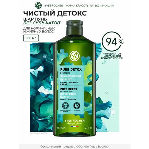 НАЙТИ ВЫГОДНЕЕ - Yves Rocher Шампунь чистый детокс с Водорослями БИО - Без Cульфатов - Для нормальных и жирных волос, 300мл