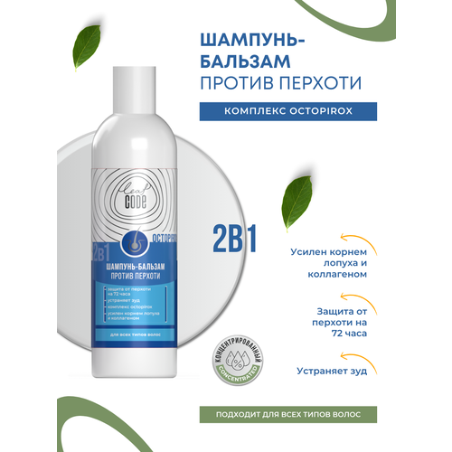 Лечебный шампунь бальзам от Перхоти для всех типов волос LEAF CODE с активным комплексом Октопирокс ( Octopirox ) глубоко очищает кожу головы, устраняет перхоть, зуд и предотвращает ее появление, нормализует выделение кожного сала, питает и укрепляет волос по всей длине, одновременно увлажняя и придавая объем и блеск.