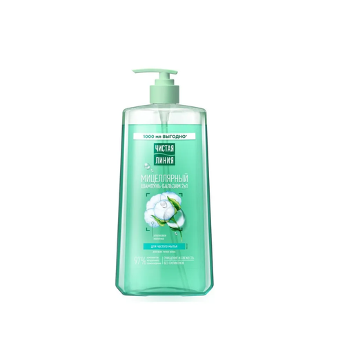 НАЙТИ ВЫГОДНЕЕ - Чистая линия Шампунь и бальзам ополаскиватель для волос 2 в 1 мицеллярный с хлопковым молочком, 1000 мл