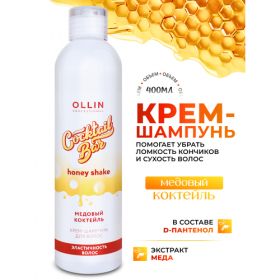 Крем-шампунь для волос "Медовый коктейль" от OLLIN Professional - это профессиональное средство для ухода за волосами, которое обеспечивает гладкость, эластичность и здоровый блеск.