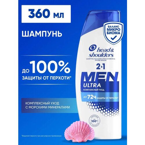 2в1 Шампунь и бальзам-ополаскиватель против перхоти Head & Shoulders (Хед энд Шолдерс) Men Ultra Комплексный уход с морскими минералами ухаживает за волосами и кожей головы, полностью оправдывая ожидания даже самых требовательных мужчин. Это средство от перхоти 2 в 1 с добавлением очищающих и увлажняющих компонентов очищает кожу головы и дарит волосам здоровый вид. 2в1 Шампунь и бальзам-ополаскиватель содержит пиритион цинка и карбонат цинка, благодаря которым он обеспечивает до 100% свободы от перхоти*. Его мягкая pH-сбалансированная формула не содержит парабенов, фосфатов и парафинов. Head&Shoulders — бренд шампуней № 1 в мире**, который также заботится о планете: флакон на 40% состоит из переработанного пластика (за исключением крышки и этикетки) и пригоден для переработки. *Видимой перхоти при регулярном применении. **По продажам. На основании данных NielsenIQ RMS для категории шампуней за 12 мес., завершившихся 30.04.2021, для общего рынка розничной торговли.