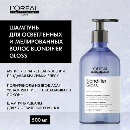 НАЙТИ ВЫГОДНЕЕ - Шампунь L'Oreal Blondifier Gloss, для блонда, осветленных и мелированных волос, 500мл
