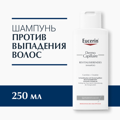 Шампунь для волос и кожи головы против выпадения волос Eucerin DermoCapillaire создан для борьбы с генетически вызванным выпадением волос и их истончением. Входящие в состав шампуня карнитин и креатин способствуют укреплению корней волос. Наибольшую эффективность шампунь демонстрирует при совместном использовании с сывороткой против выпадения волос Eucerin Dermo Capillaire. Данный комплекс стимулирует питание корней волос, укрепляя их, а также придает волосам гладкость, мягкость и здоровый блеск. В результате клинических исследований было доказано, что продукт можно использовать при чувствительной коже головы. Свойства: - щелочи, близкие к нейтральной среде - легкий аромат. Подходит для взрослых с 14 лет.