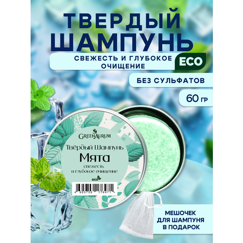 НАЙТИ ВЫГОДНЕЕ - Твердый Шампунь GreenAurum Мята, для всех типов волос, глубокое очищение