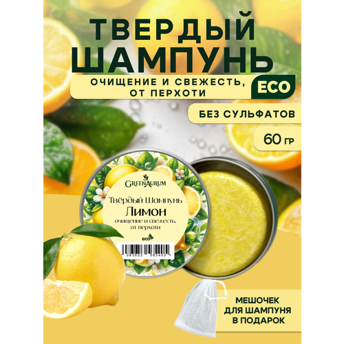 НАЙТИ ВЫГОДНЕЕ - Твердый шампунь Лимон против перхоти для всех типов волос, GreenAurum